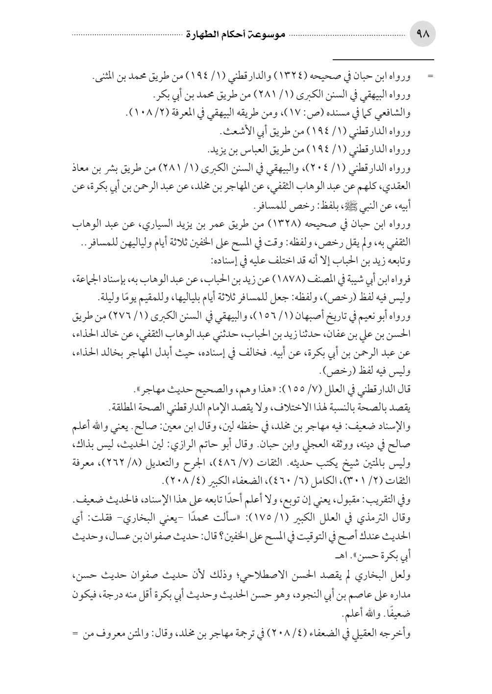 ورواه أبو نعيم في تاريخ أصبهان (١/ ١٥٦)، والبيهقي في السنن الكبرى (١/ ٢٧٦) من طريق الحسن بن علي بن عفان، حدثنا زيد بن الحباب، حدثني عبد الوهاب الثقفي، عن خالد الحذاء، عن عبد الرحمن بن أبي بكرة، عن أبيه. فخالف في إسناده، حيث أبدل المهاجر بخالد الحذاء، وليس فيه لفظ (رخص).