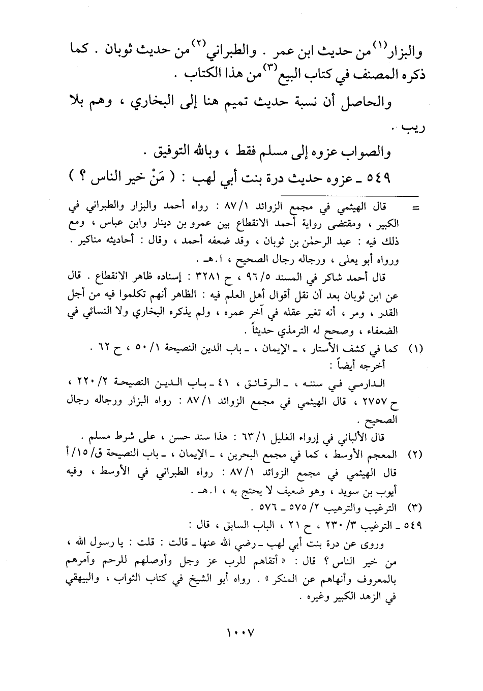 ٥٤٩ - عزوه حديث درة بنت أبي لهب: (مَنْ خير الناس؟)