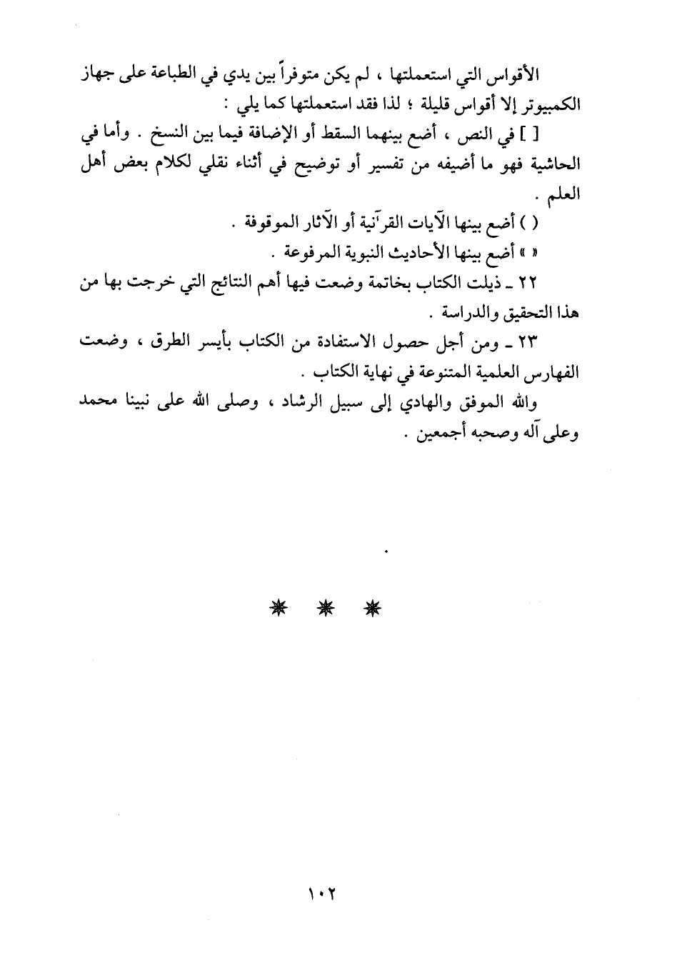 ٢٣ - ومن أجل حصول الاستفادة من الكتاب بأيسر الطرق، وضعت الفهارس العلمية المتنوعة في نهاية الكتاب.