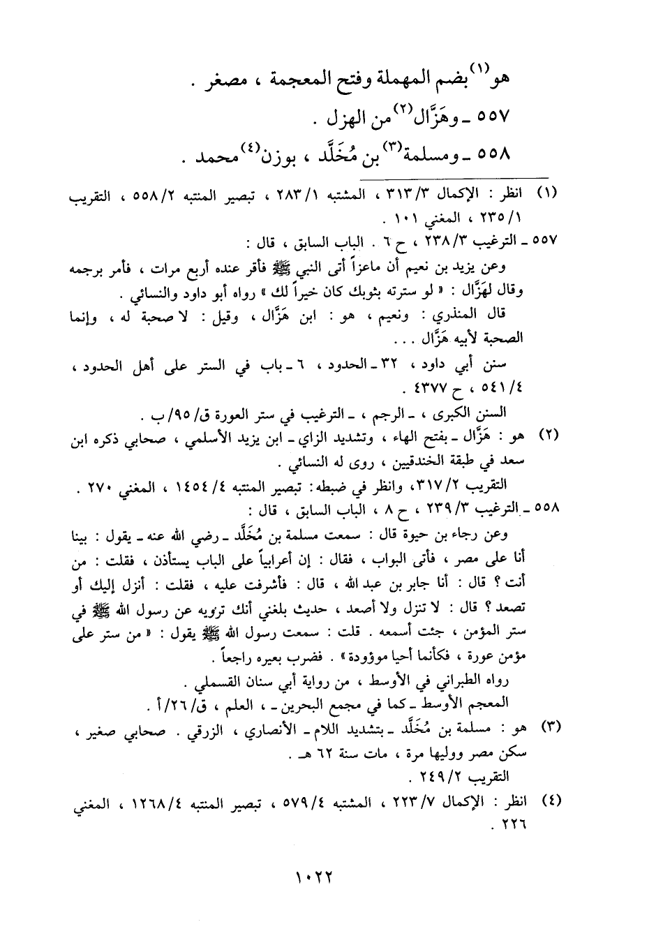 ٥٥٨ - ومسلمة بن مُخَلَّد، بوزن محمد.