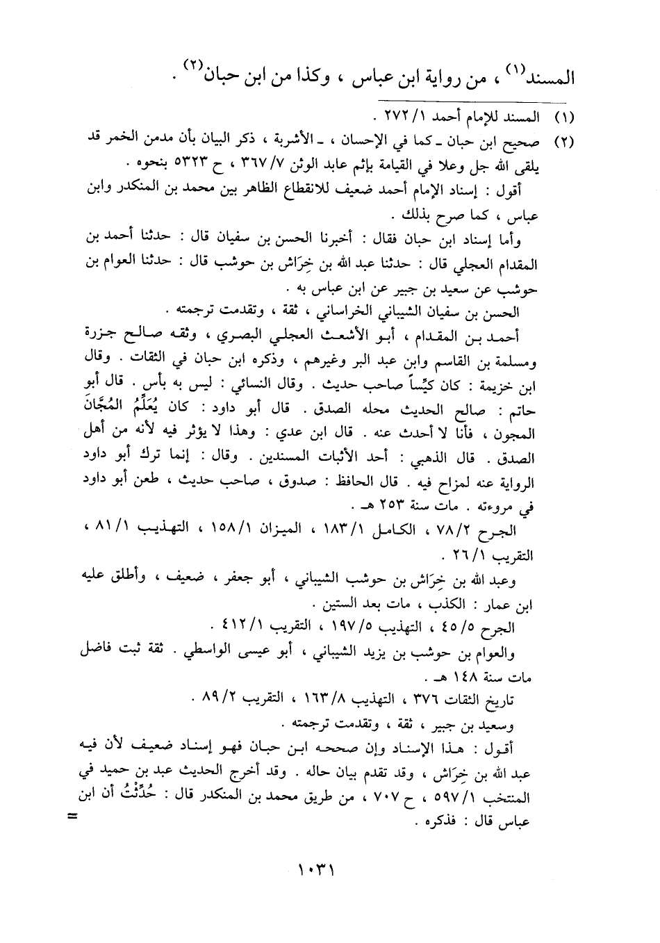 المسند، من رواية ابن عباس، وكذا من ابن حبان.