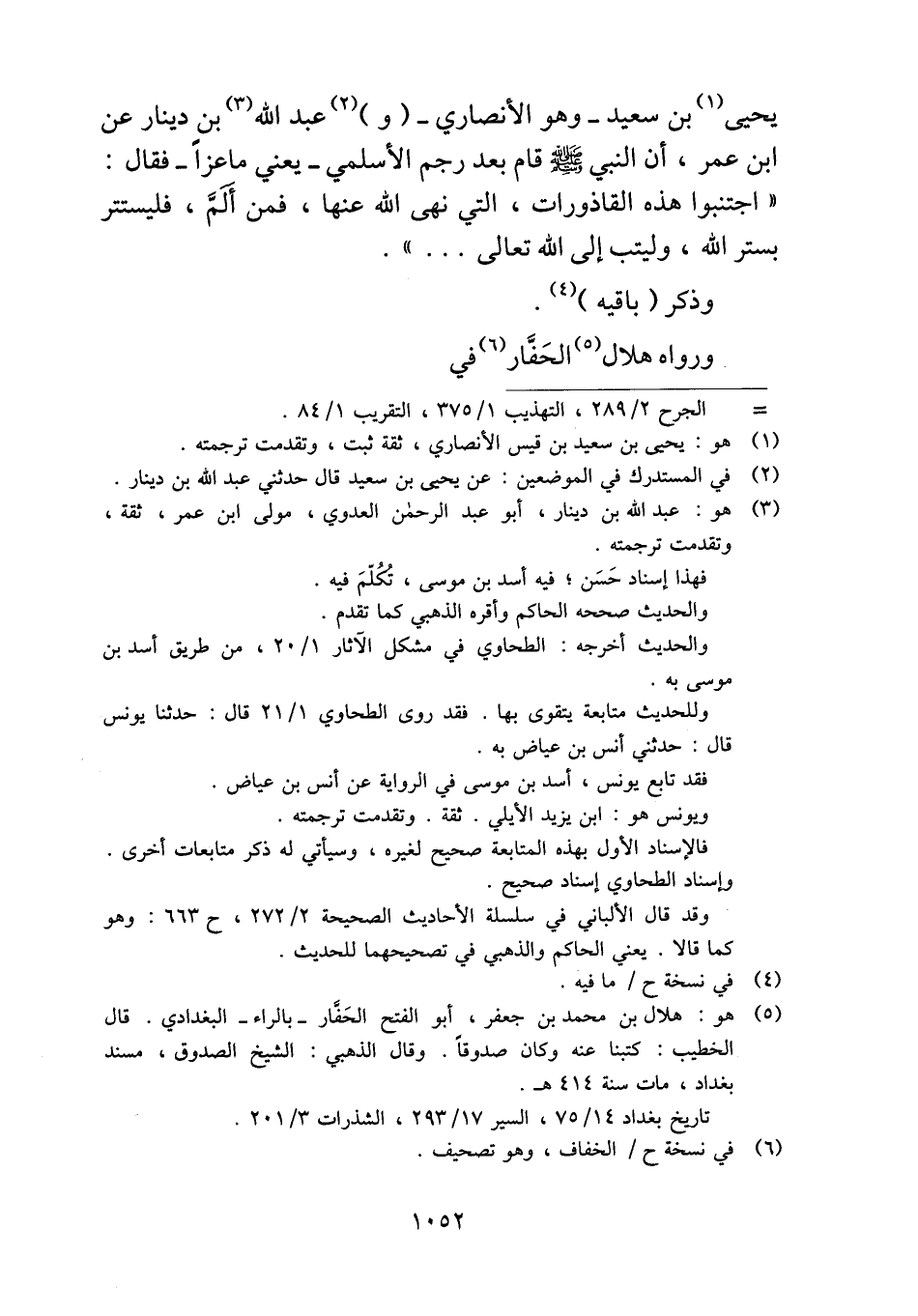 يحيى بن سعيد -وهو الأنصاري- (و) عبد الله بن دينار عن ابن عمر، أن النبي - صلى الله عليه وسلم - قام بعد رجم الأسلمي -يعني ماعزاً- فقال: "اجتنبوا هذه القاذورات، التي نهى الله عنها، فمن ألمَّ، فليستتر بستر الله، وليتب إلى الله تعالى ... ".