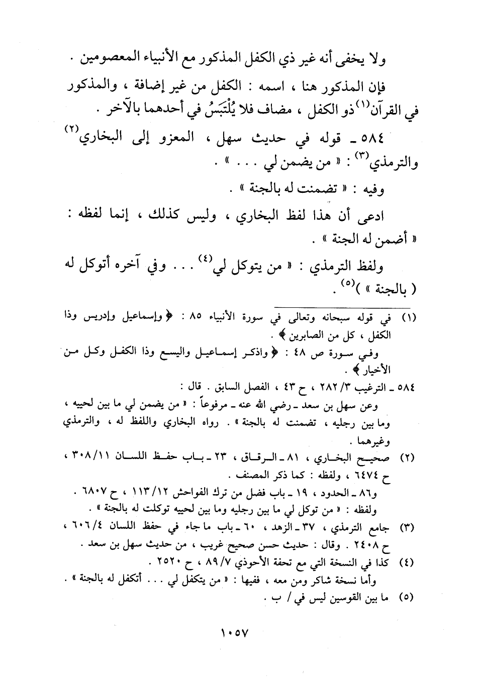 ٥٨٤ - قوله في حديث سهل، المعزو إلى البخاري والترمذي: "من يضمن لي ... ".