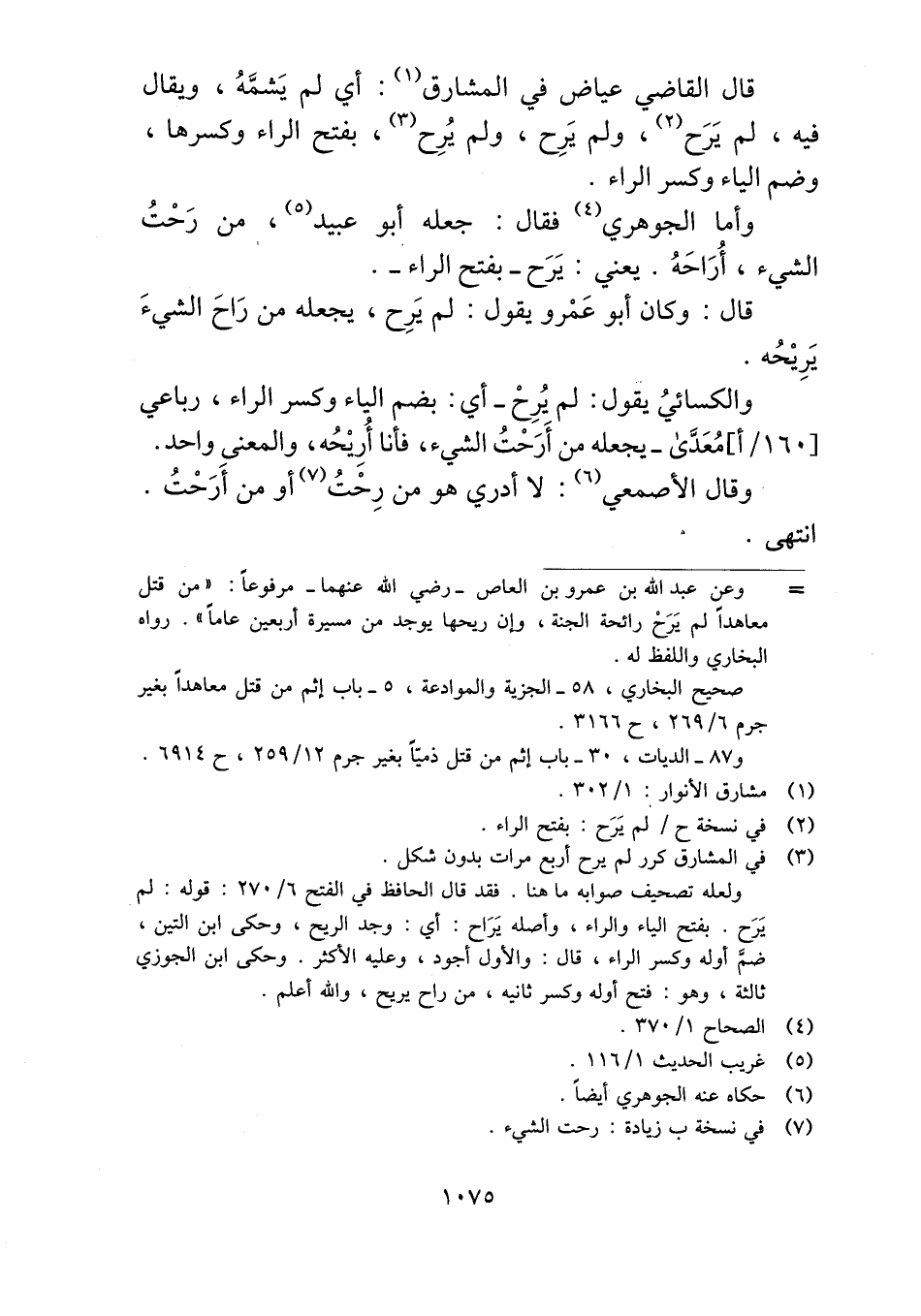 قال القاضي عياض في المشارق: أي لم يَشمَّهُ، ويقال فيه، لم يَرَح، ولم يَرِح، ولم يُرِح، بفتح الراء وكسرها، وضم الياء وكسر الراء.