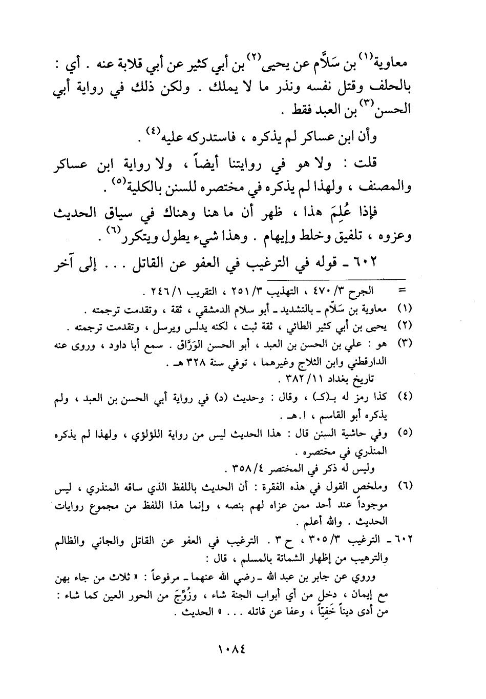 فإذا عُلِمَ هذا، ظهر أن ما هنا وهناك في سياق الحديث وعزوه، تلفيق وخلط وإيهام. وهذا شيء يطول ويتكرر.