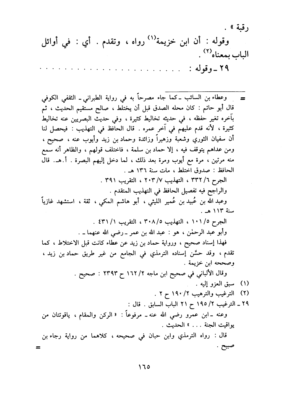 وقوله: أن ابن خزيمة رواه، وتقدم. أي: في أوائل الباب بمعناه.