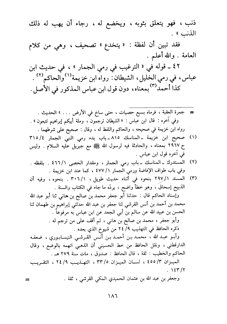 ٤٢ - قوله في "الترغيب في رمي الجمار"، في حديث ابن عباس، في رمي الخليل، الشيطان: رواه ابن خزيمة والحاكم.