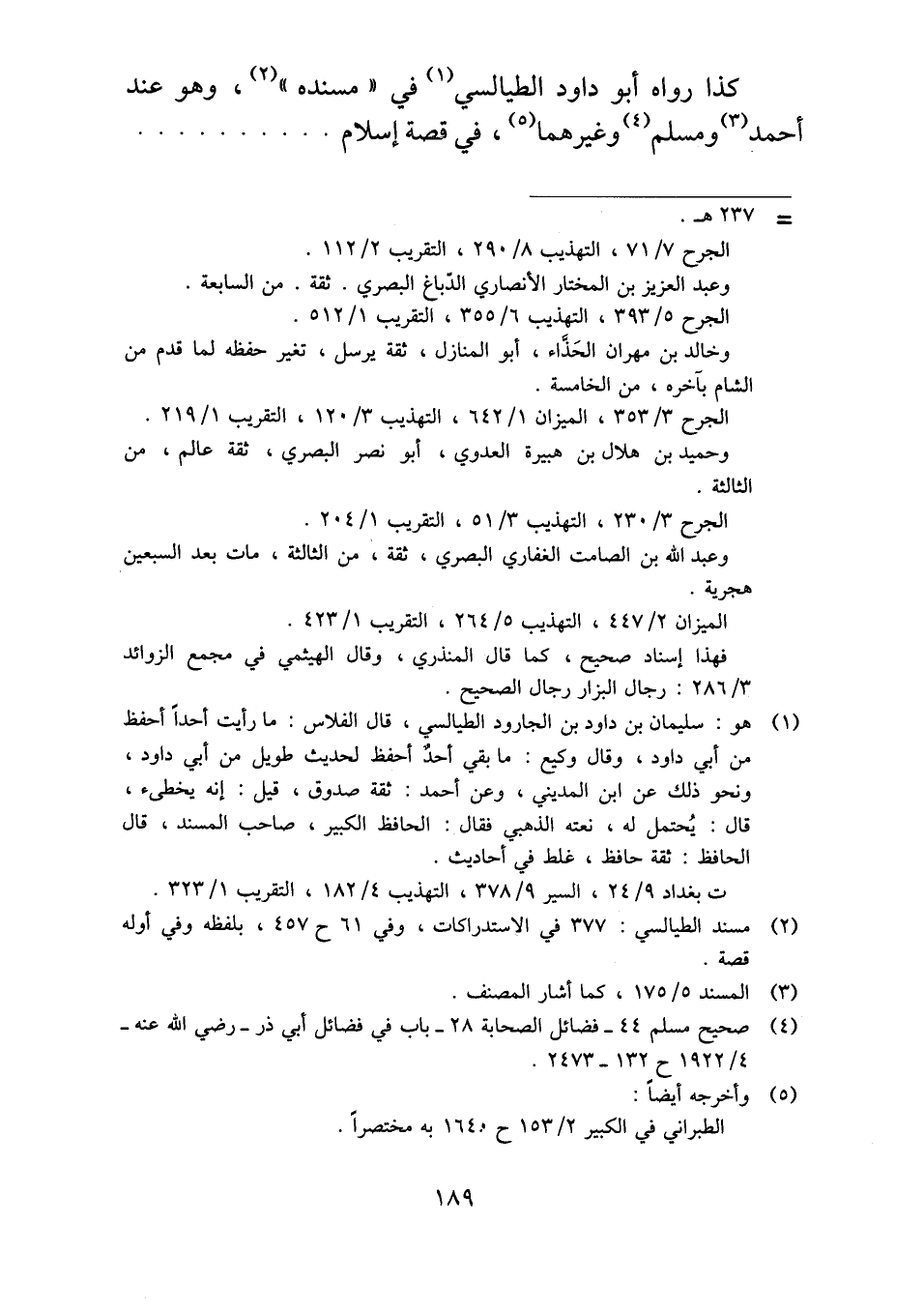 كذا رواه أبو داود الطيالسي في "مسنده"، وهو عند أحمد ومسلم وغيرهما، في قصة إسلام