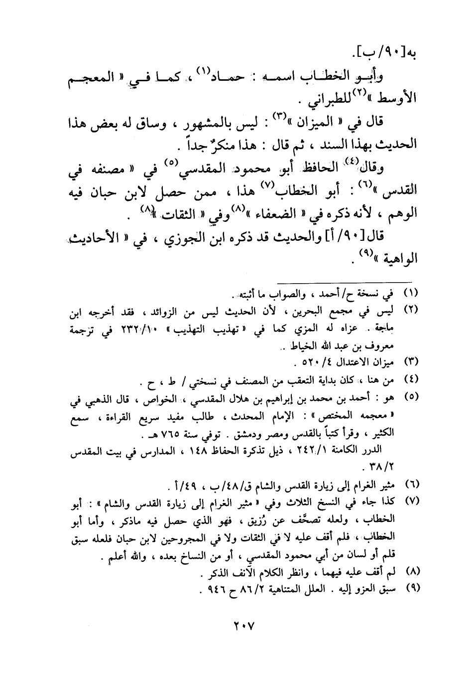 وقال الحافظ أبو محمود المقدسي في "مصنفه في القدس": أبو الخطاب هذا، ممن حصل لابن حبان فيه الوهم، لأنه ذكره في "الضعفاء" وفي "الثقات".