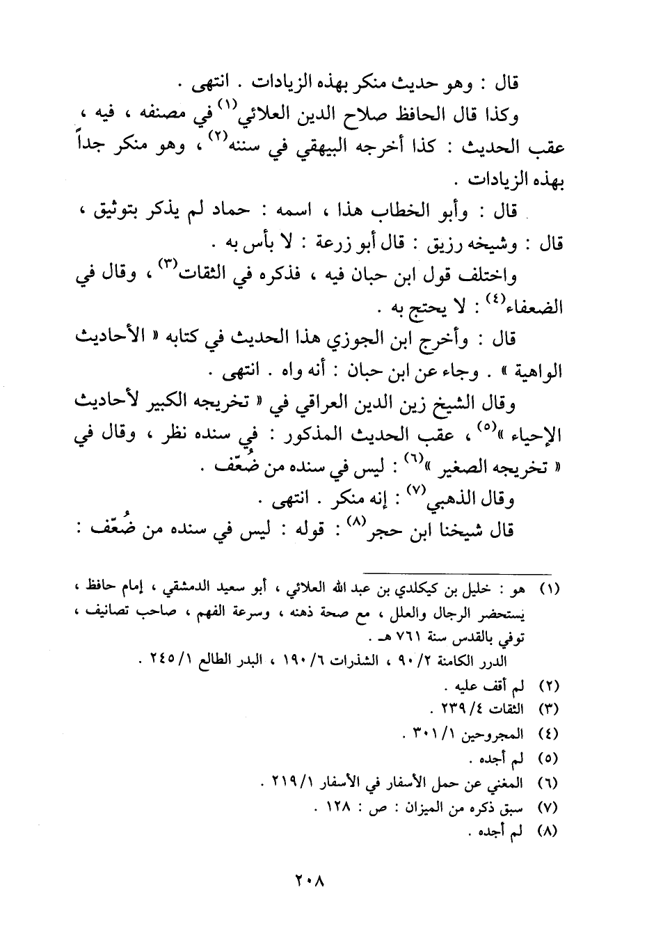 وكذا قال الحافظ صلاح الدين العلائي في مصنفه، فيه، عقب الحديث: كذا أخرجه البيهقي في سننه، وهو منكر جداً بهذه الزيادات.