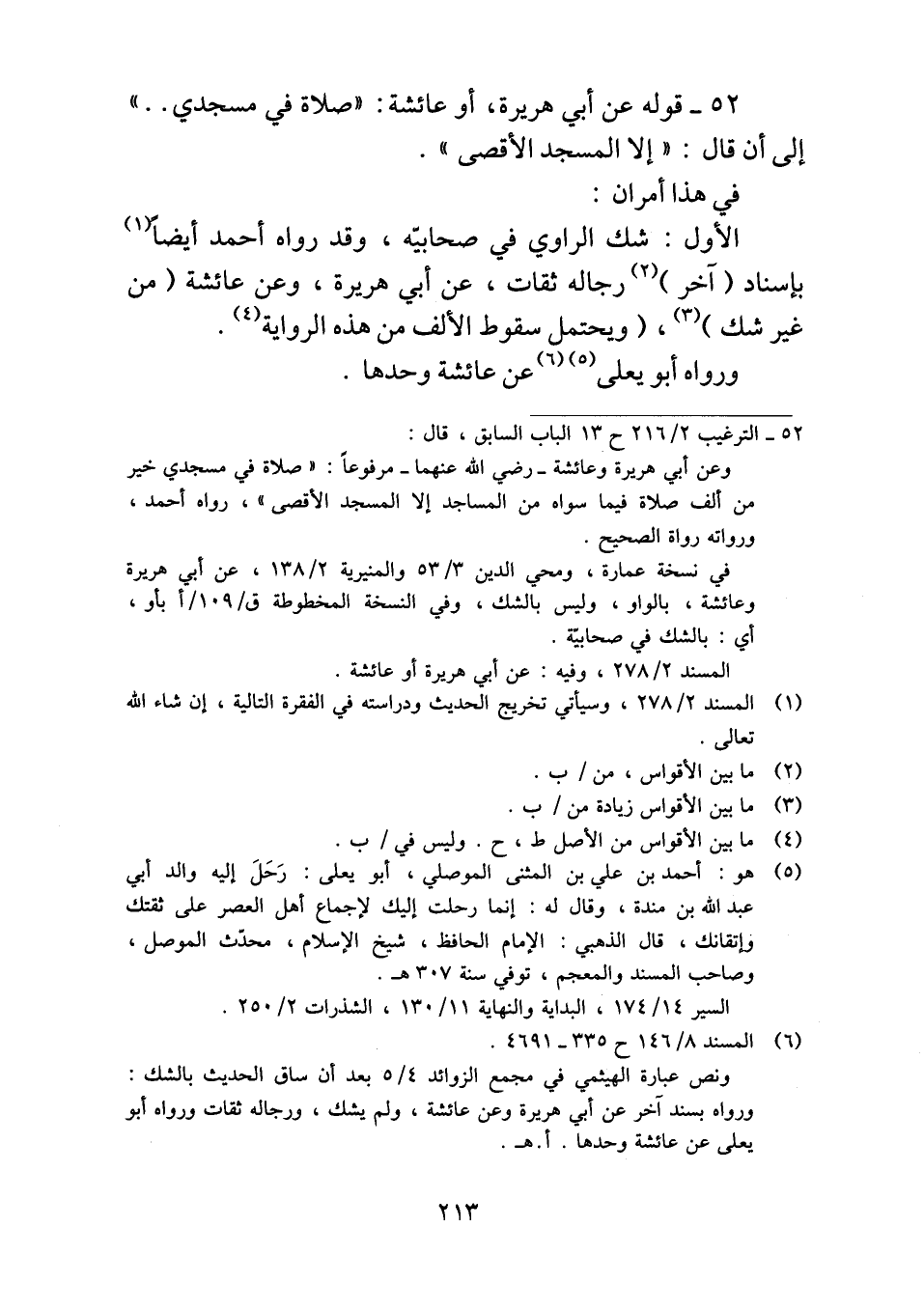٥٢ - قوله عن أبي هريرة، أو عائشة: "صلاة في مسجدي .. " إلى أن قال: "إلا المسجد الأقصى".