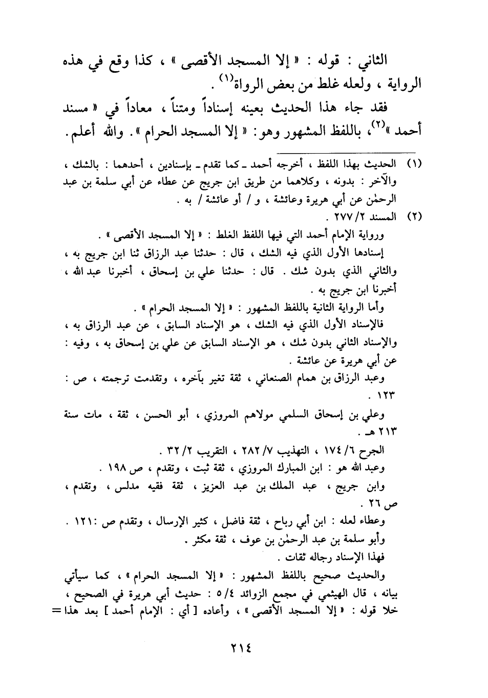 فقد جاء هذا الحديث بعينه إسناداً ومتناً، معاداً في "مسند أحمد"، باللفظ المشهور وهو: "إلا المسجد الحرام". والله أعلم.