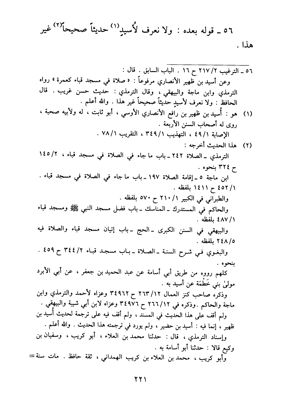 ٥٦ - قوله بعده: ولا نعرف لأُسيدٍ حديثاً صحيحاً غير هذا.