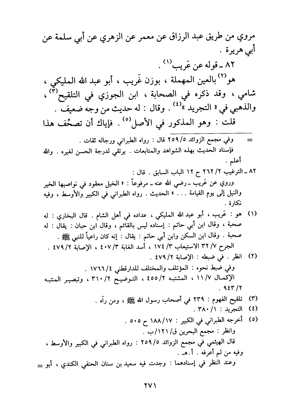 ٨٢ - قوله عن عَريب.