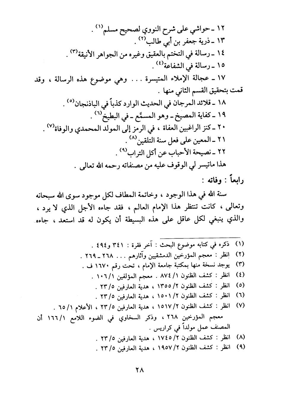(٩) انظر: كشف الظنون ٢/ ١٩٥٧، هدية العارفين ٥/ ٢٣.