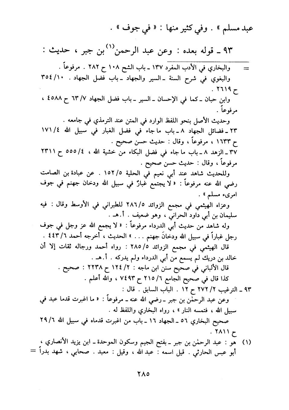 ٩٣ - قوله بعده. وعن عبد الرحمن بن جبر، حديث: