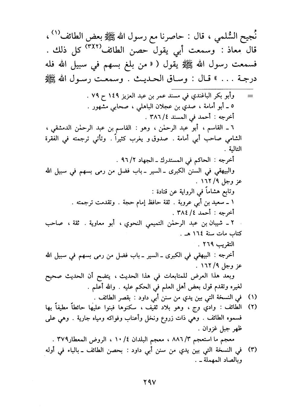 نُجيح السُّلمي، قال: حاصرنا مع رسول الله - صلى الله عليه وسلم - بعض الطائف، قال. معاذ: وسمعت أبي يقول حصن الطائف كل ذلك.