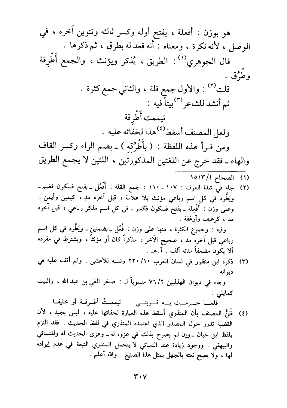 ومن قرأ هذه اللفظة: (بأَطْرُقِهِ) -بضم الراء وكسر القاف والهاء- فقد خرج عن اللغتين المذكورتين، اللتين لا يجمع الطريق
