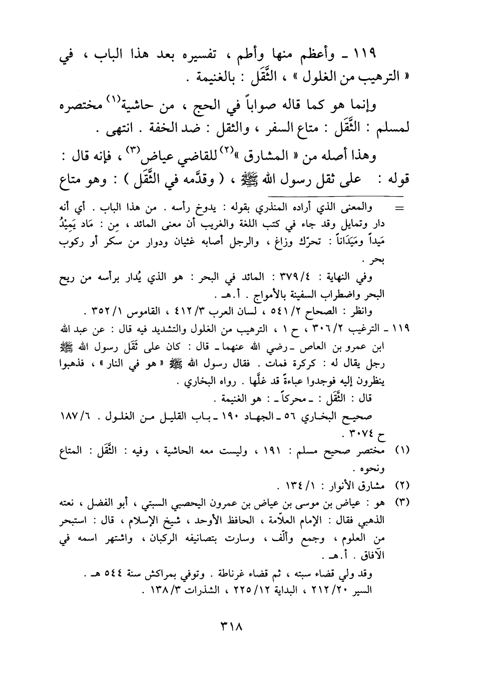 ١١٩ - وأعظم منها وأطم، تفسيره بعد هذا الباب، في "الترهيب من الغلول"، الثَّقَل: بالغنيمة.