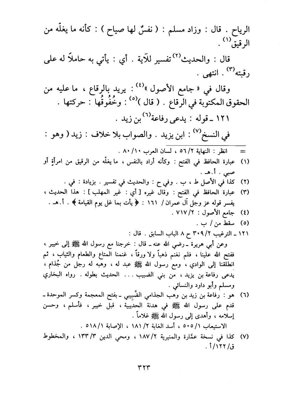 ١٢١ - قوله: يدعى رفاعة بن زيد.