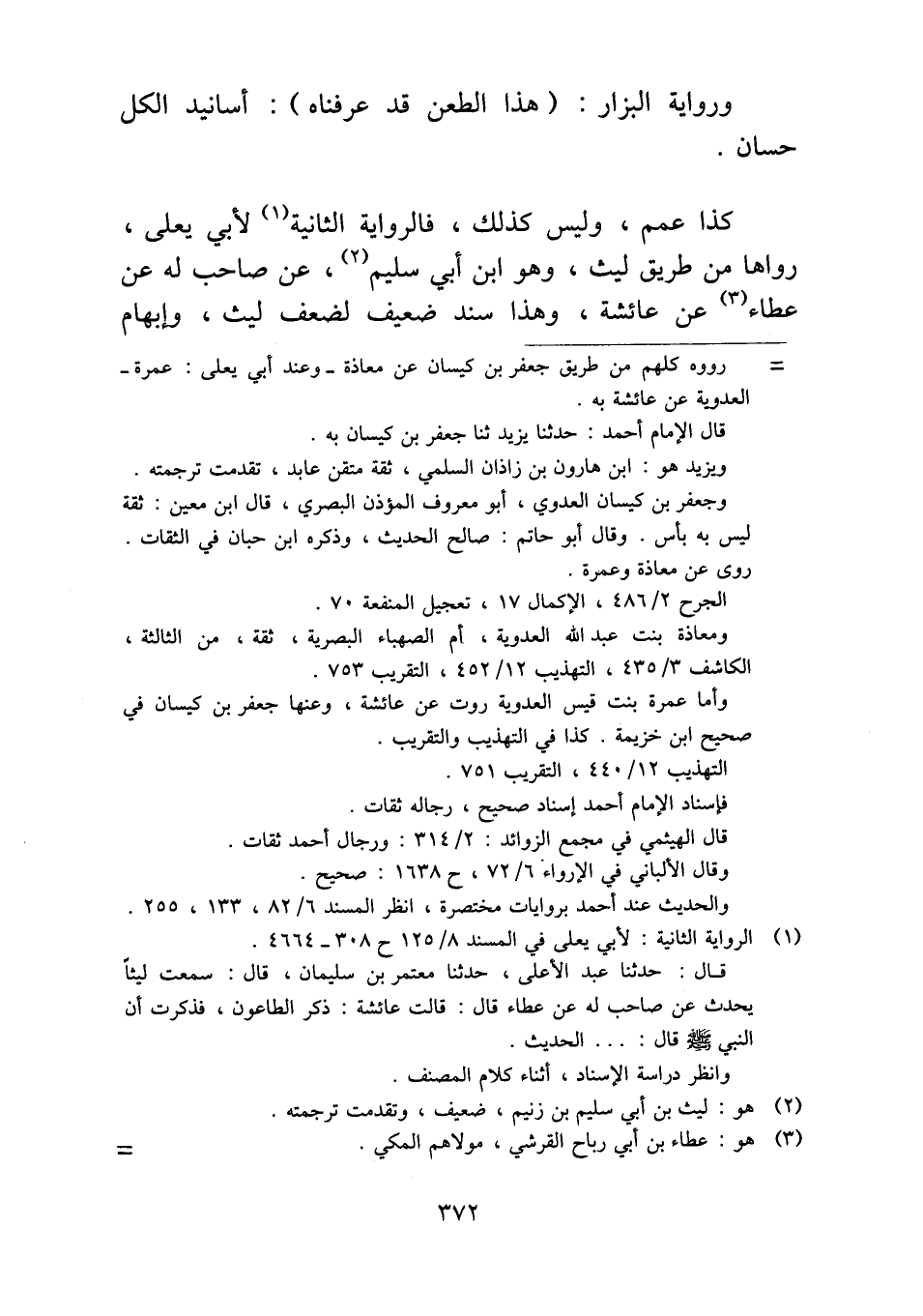 كذا عمم، وليس كذلك، فالرواية الثانية لأبي يعلى، رواها من طريق ليث، وهو ابن أبي سليم، عن صاحب له عن عطاء عن عائشة، وهذا سند ضعيف لضعف ليث، وإبهام