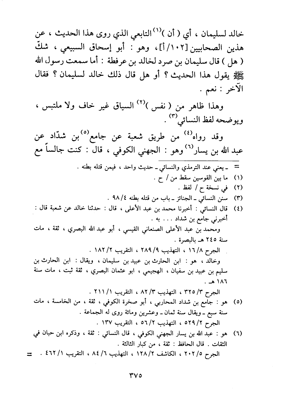 خالد لسليمان، أي (أن) التابعي الذي روى هذا الحديث، عن هذين الصحابيين، وهو: أبو إسحاق السبيعي، شكّ (هل) قال سليمان بن ورد لخالد بن عرفطة: أما سمعت رسول الله - صلى الله عليه وسلم - يقول هذا الحديث؟ أو هل قال ذلك خالد لسليمان؟ فقال الآخر: نعم.