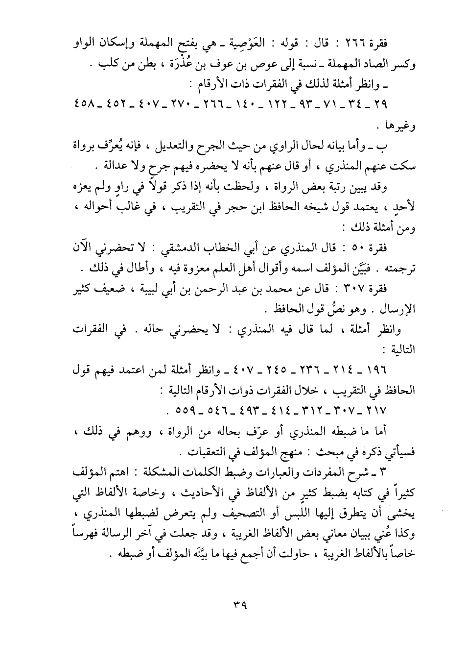 فقرة ٥٠: قال المنذري عن أبي الخطاب الدمشقي: لا تحضرني الآن ترجمته. فبَيَّن المؤلف اسمه وأقوال أهل العلم معزوة فيه، وأطال في ذلك.