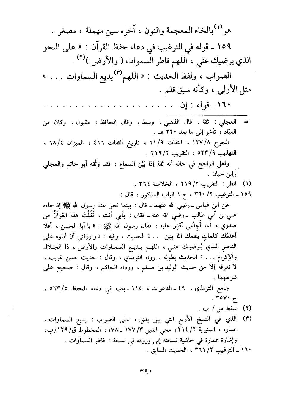 ١٥٩ - قوله في الترغيب في دعاء حفظ القرآن: "على النحو الذي يرضيك عني، اللهم فاطر السموات (والأرض).