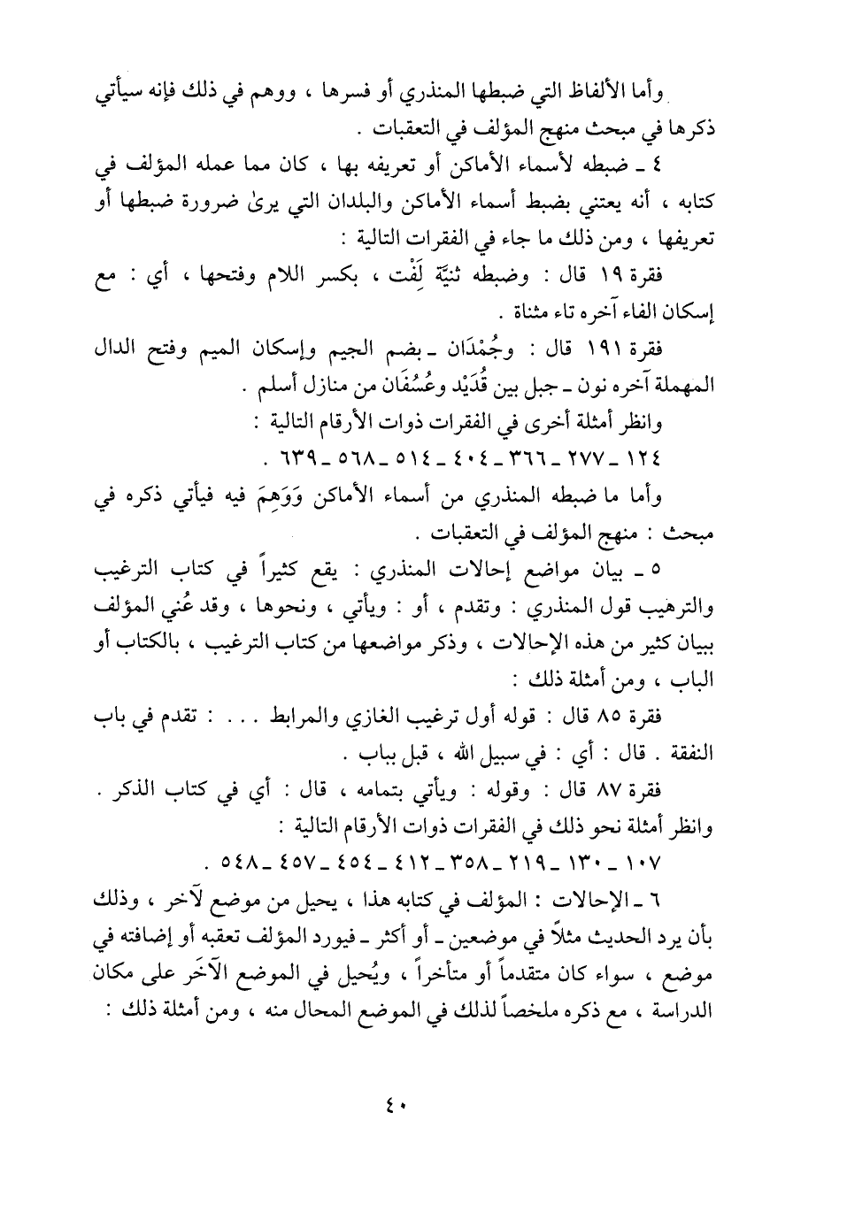 وأما الألفاظ التي ضبطها المنذري أو فسرها، ووهم في ذلك فإنه سيأتي ذكرها في مبحث منهج المؤلف في التعقبات.
