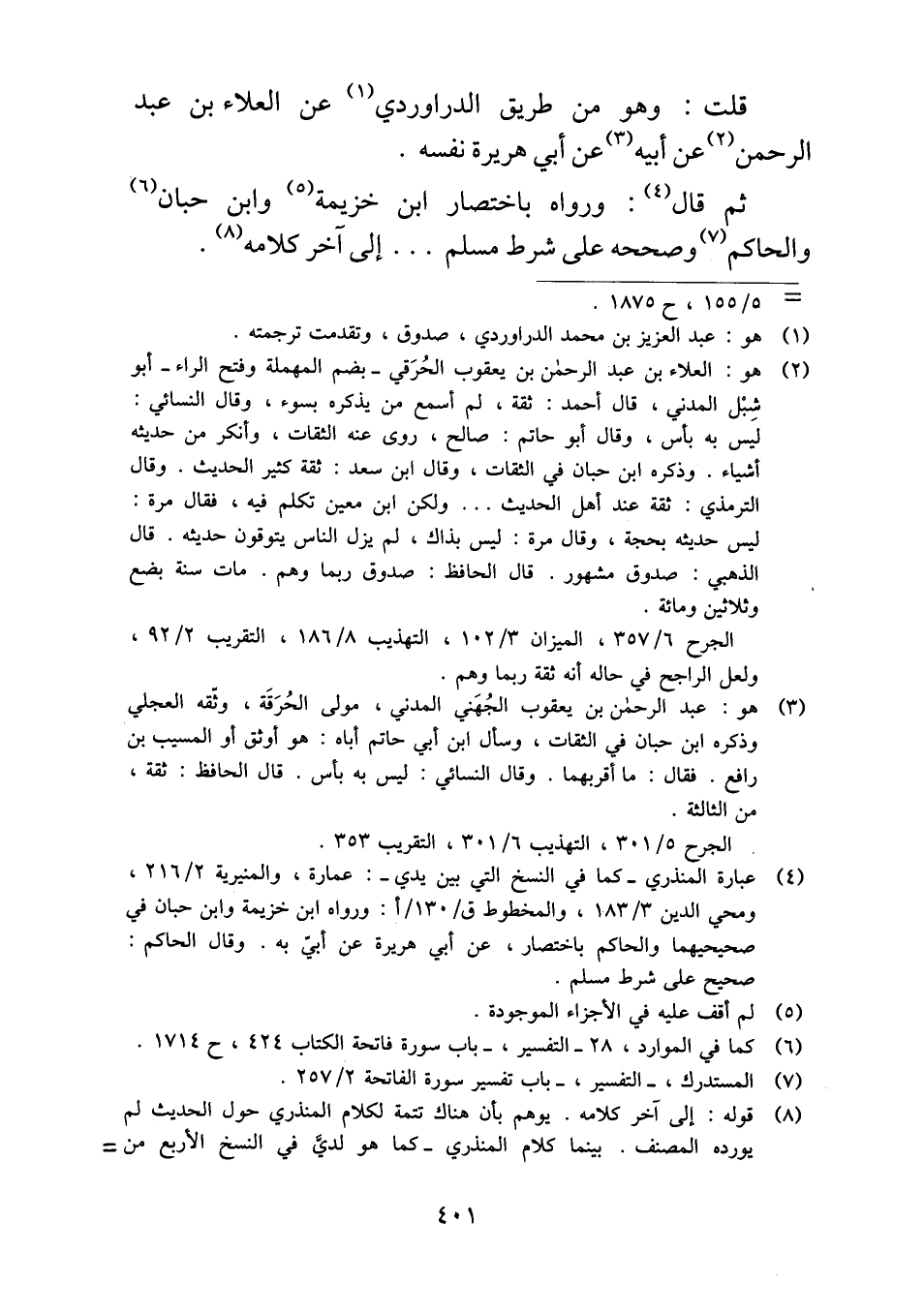 قلت: وهو من طريق الدراوردي عن العلاء بن عبد الرحمن عن أبيه عن أبي هريرة نفسه.