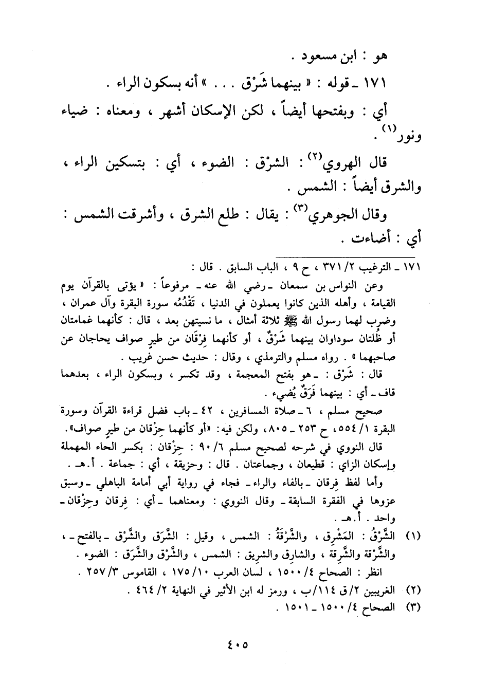 ١٧١ - قوله: "بينهما شَرْق ... " أنه بسكون الراء.