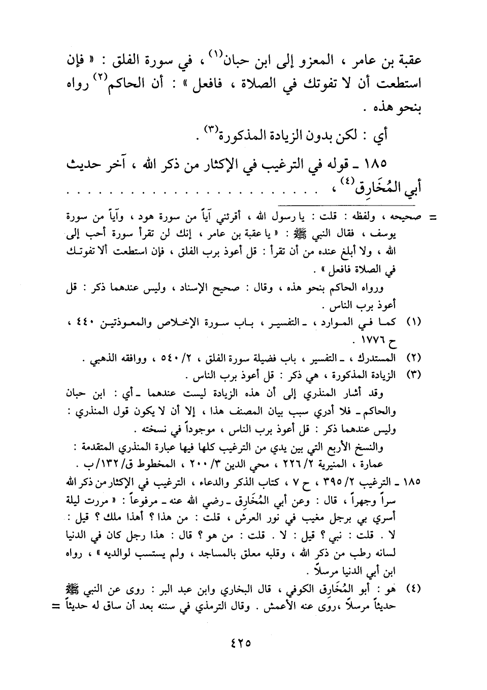 ١٨٥ - قوله في الترغيب في الإكثار من ذكر الله، آخر حديث أبي المُخَارِق ,