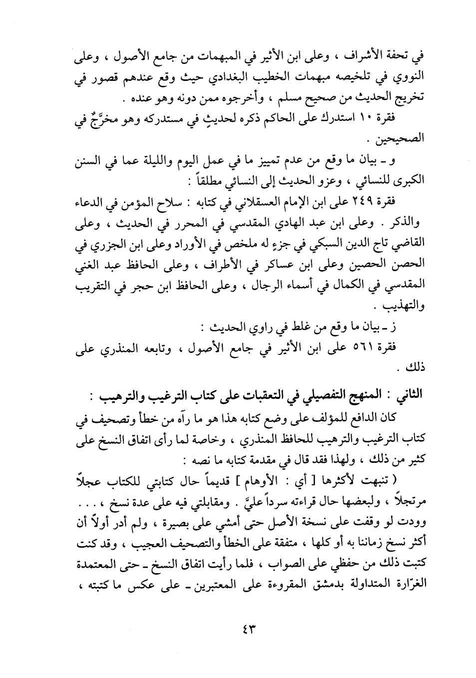 الثاني: المنهج التفصيلي في التعقبات على كتاب الترغيب والترهيب: