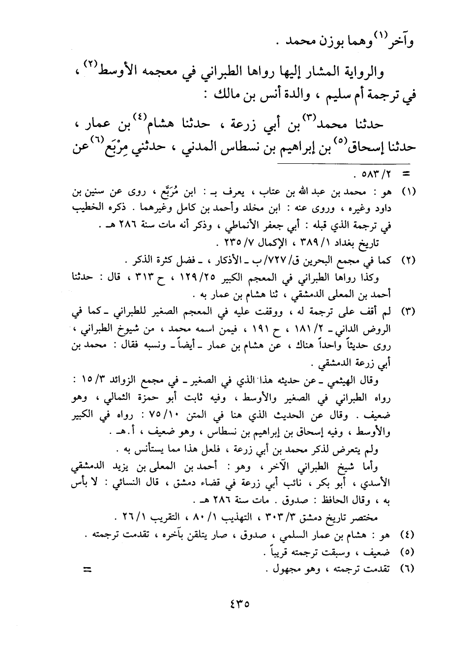 والرواية المشار إليها رواها الطبراني في معجمه الأوسط، ترجمة أم سليم، والدة أنس بن مالك: