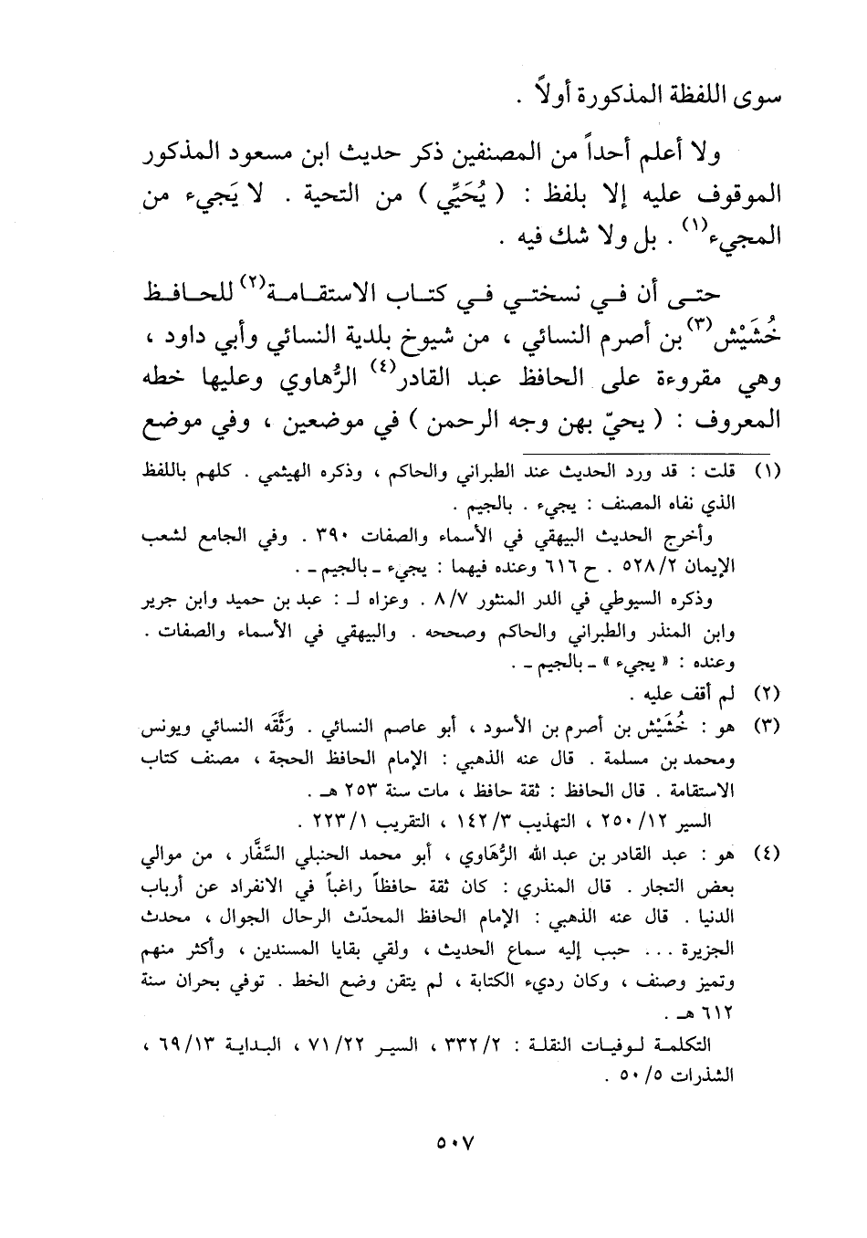 حتى أن في نسختي في كتاب الاستقامة للحافظ خُشَيْش بن أصرم النسائي، من شيوخ بلدية النسائي وأبي داود، وهي مقروءة على الحافظ عبد القادر الرُّهاوي وعليها خطه المعروف: (يحيّ بهن وجه الرحمن) في موضعين، وفي موضع