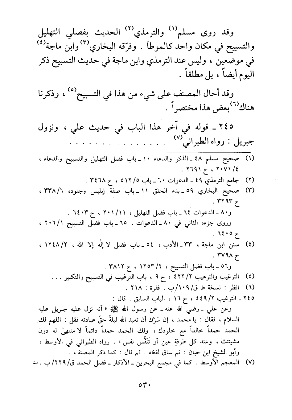 ٢٤٥ - قوله في آخر هذا الباب في حديث علي، ونزول جبريل: رواه الطبراني