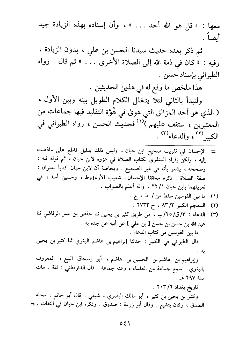 ولنبدأ بالثاني لئلا يتخلل الكلام الطويل بينه وبين الأول، (الذي هو أحد المزالق التي هوى في هُوَّة التقليد فيها جماعات من المعتبرين، ستقف عليهم) فحديث الحسن، رواه الطبراني في الكبير، والدعاء.
