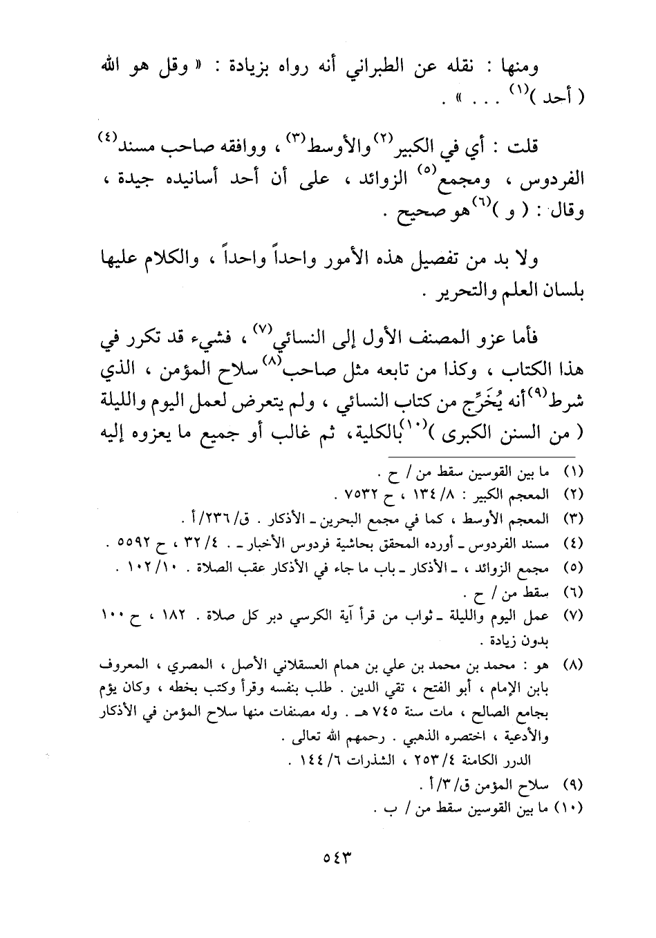 فأما عزو المصنف الأول إلى النسائي، فشيء قد تكرر في هذا الكتاب، وكذا من تابعه مثل صاحب سلاح المؤمن، الذي شرط أنه يُخَرِّج من كتاب النسائي، ولم يتعرض لعمل اليوم والليلة (من السنن الكبرى) بالكلية، ثم غالب أو جميع ما يعزوه إليه