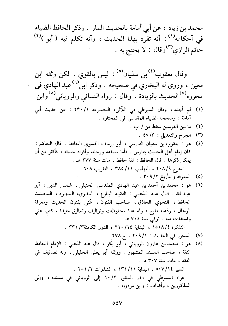 وقال يعقوب بن سفيان: ليس بالقوي. لكن وثقه ابن معين، وروى له البخاري في صحيحه. وذكر ابن عبد الهادي في محرره الحديث بالزيادة، وقال: رواه النسائي والروياني وابن