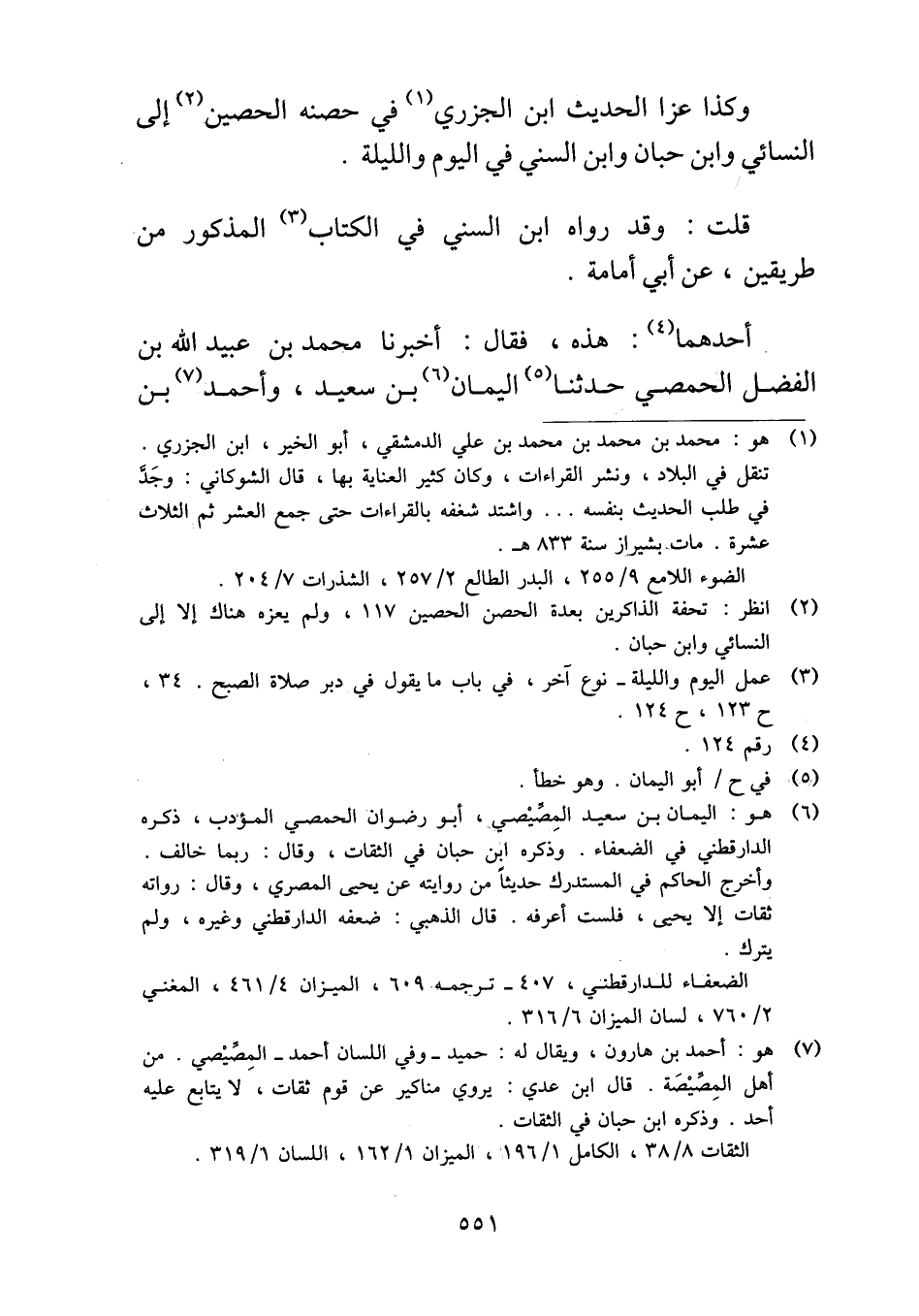 وكذا عزا الحديث ابن الجزري في حصنه الحصين إلى النسائي وابن حبان وابن السني في اليوم والليلة.