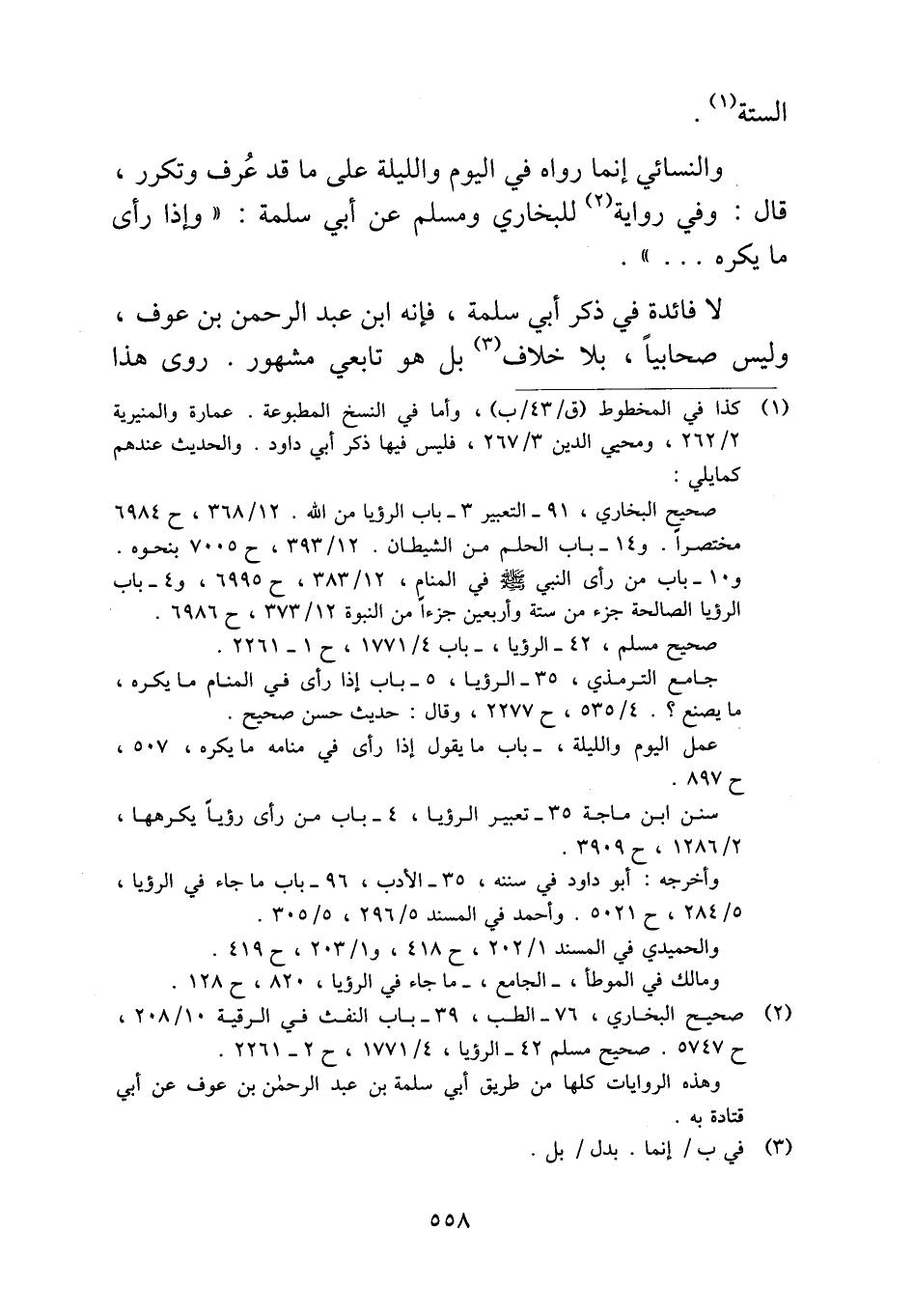 لا فائدة في ذكر أبي سلمة، فإنه ابن عبد الرحمن بن عوف، وليس صحابياً، بلا خلاف بل هو تابعي مشهور. روى هذا