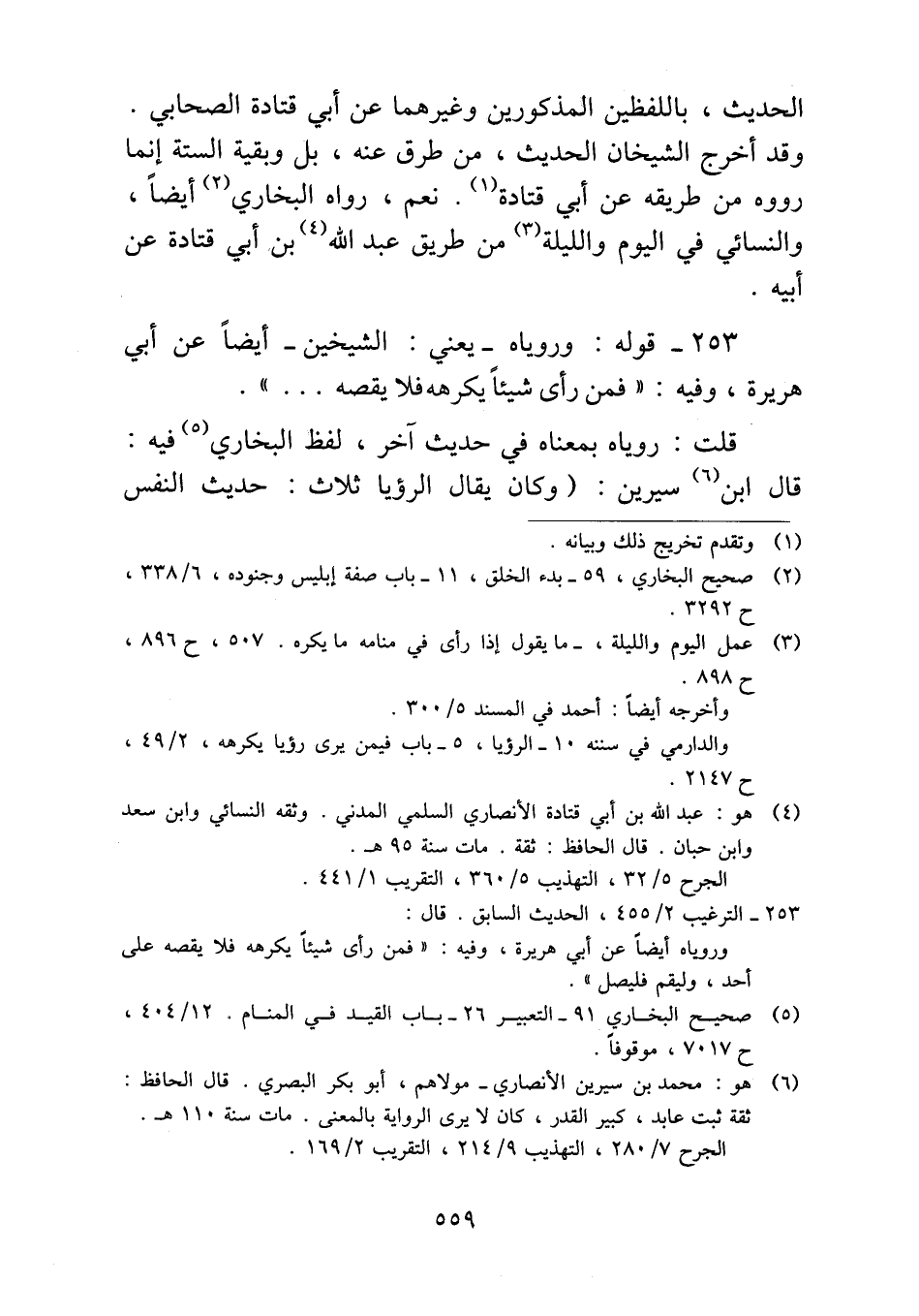 قلت: روياه بمعناه في حديث آخر، لفظ البخاري فيه: قال ابن سيرين: (وكان يقال الرؤيا ثلاث: حديث النفس