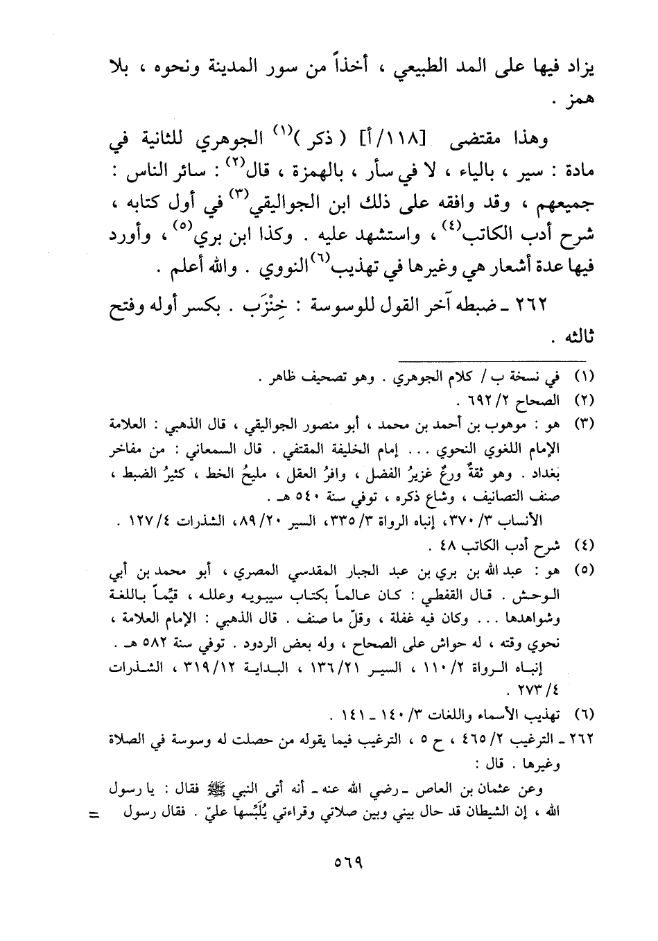 ٢٦٢ - ضبطه آخر القول للوسوسة: خِنْزَب. بكسر أوله وفتح ثالثه.