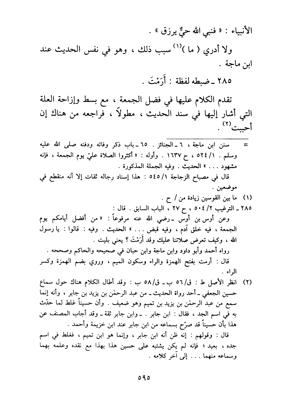 الأنبياء: "فنبي الله حيٌّ يرزق".