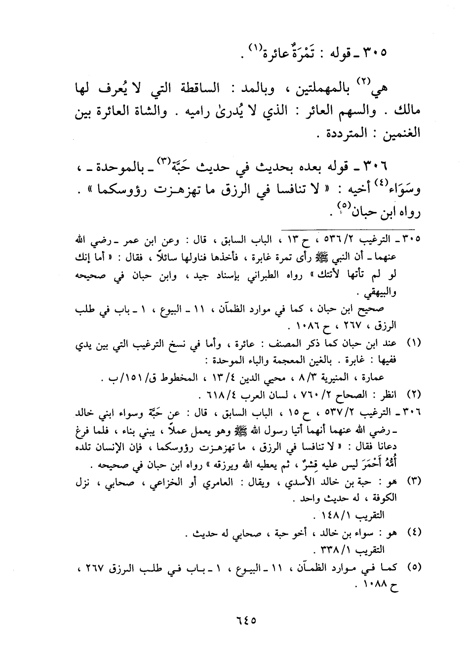 ٣٠٦ - قوله بعده بحديث في حديث حَبَّة -بالموحدة-، وسَوَاء أخيه: "لا تنافسا في الرزق ما تهزهزت رؤوسكما". رواه ابن حبان.