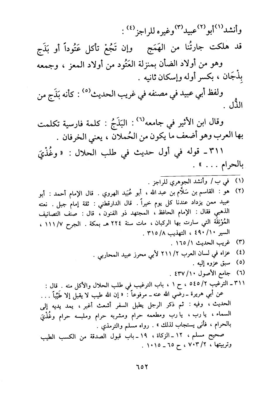 ولفظ أبي عبيد في مصنفه في غريب الحديث: كأنه بَذَج من الذُّل.