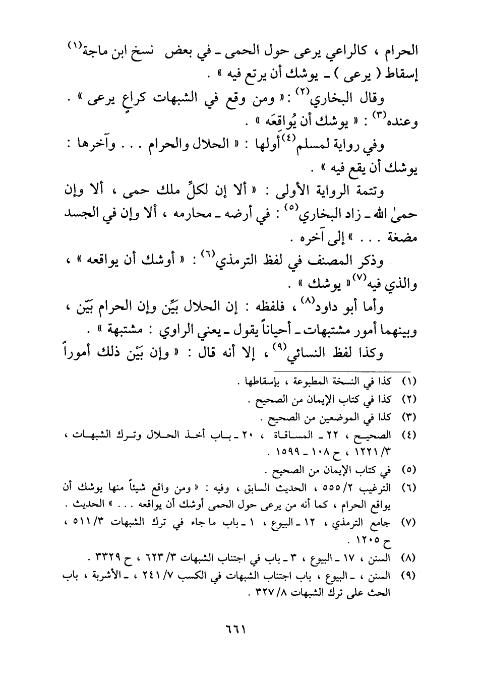 الحرام، كالراعي يرعى حول الحمى -في بعض نسخ ابن ماجه إسقاط (يرعى) - يوشك أن يرتع فيه".