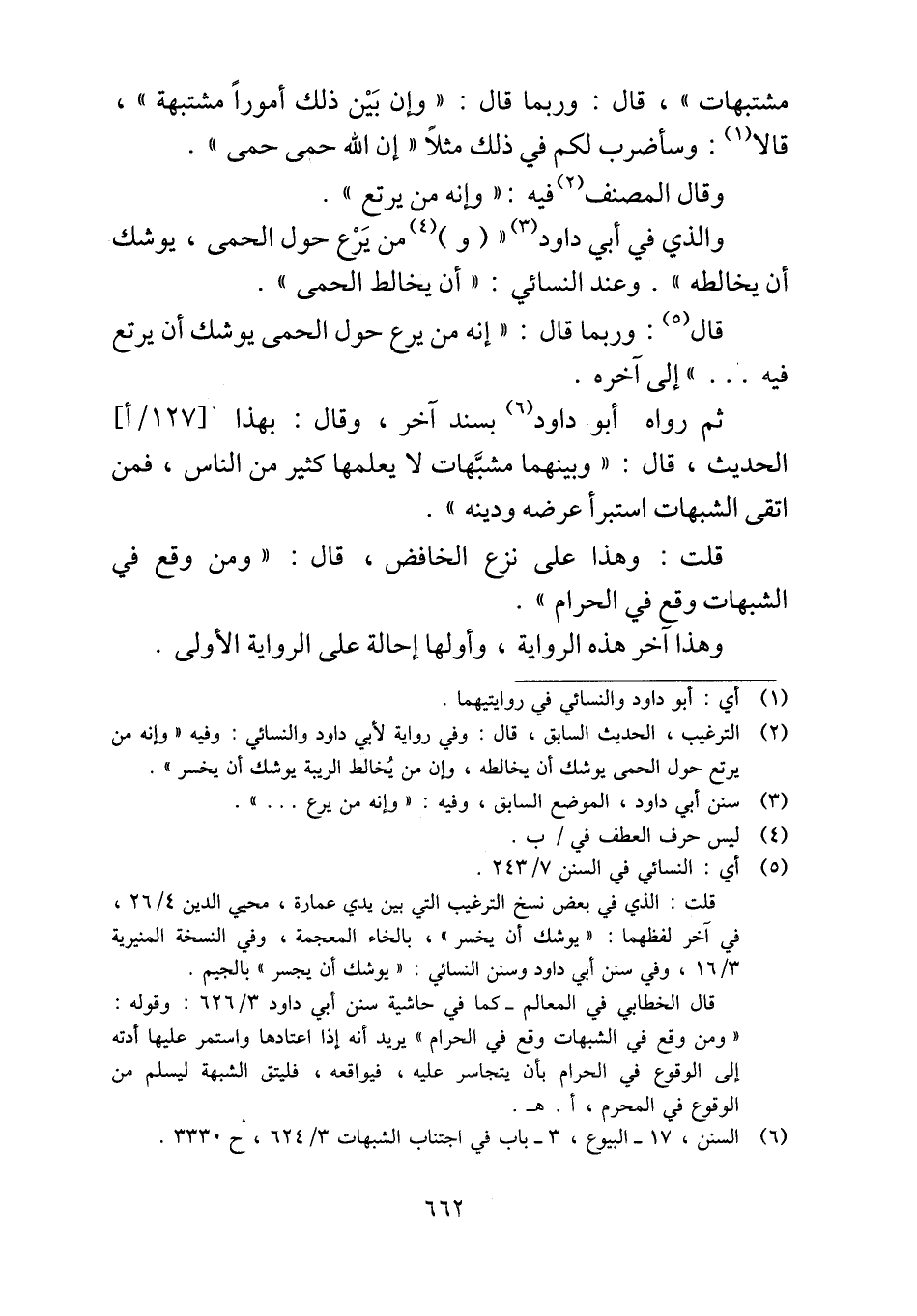 مشتبهات"، قال: وربما قال: "وإن بَيْن ذلك أموراً مشتبهة"، قالا: وسأضرب لكم في ذلك مثلاً "إن الله حمى حمى".