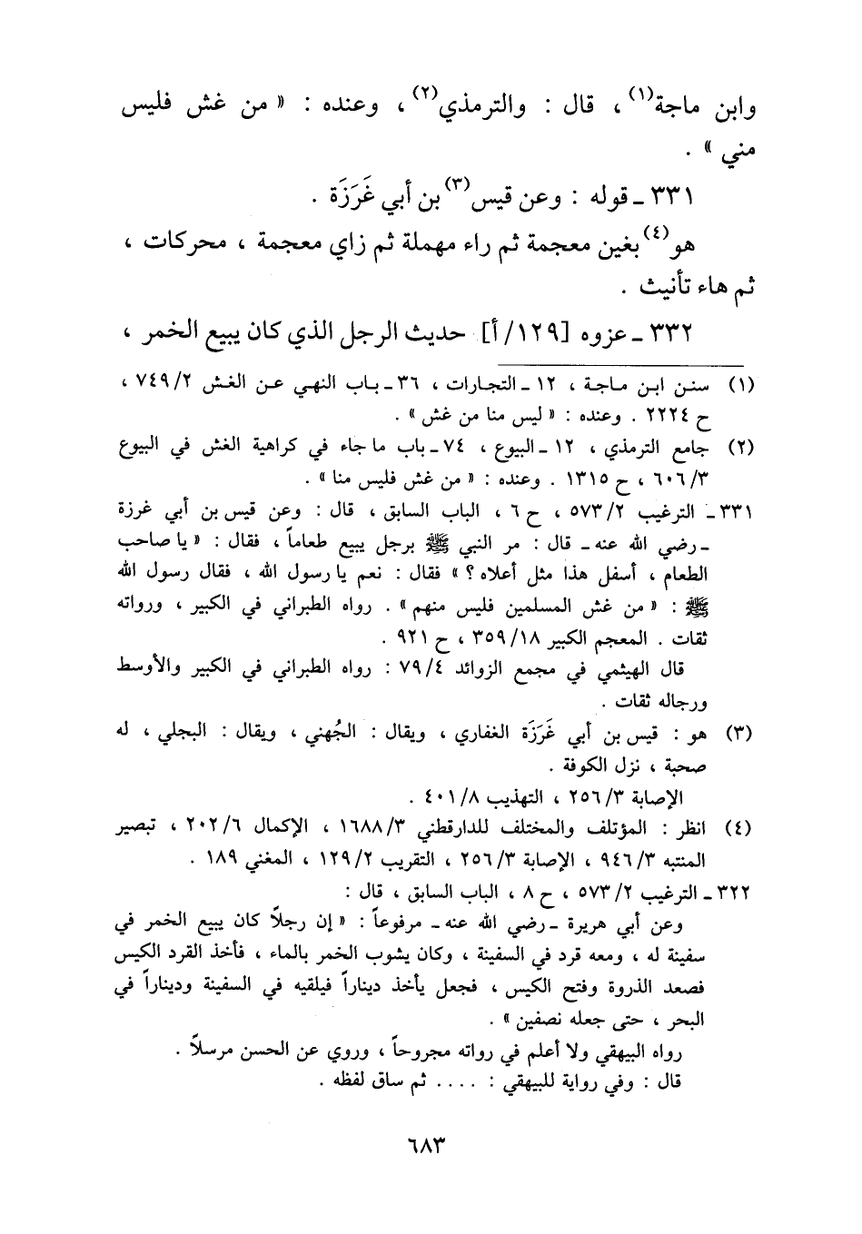 ٣٣٢ - عزوه حديث الرجل الذي كان يبيع الخمر،