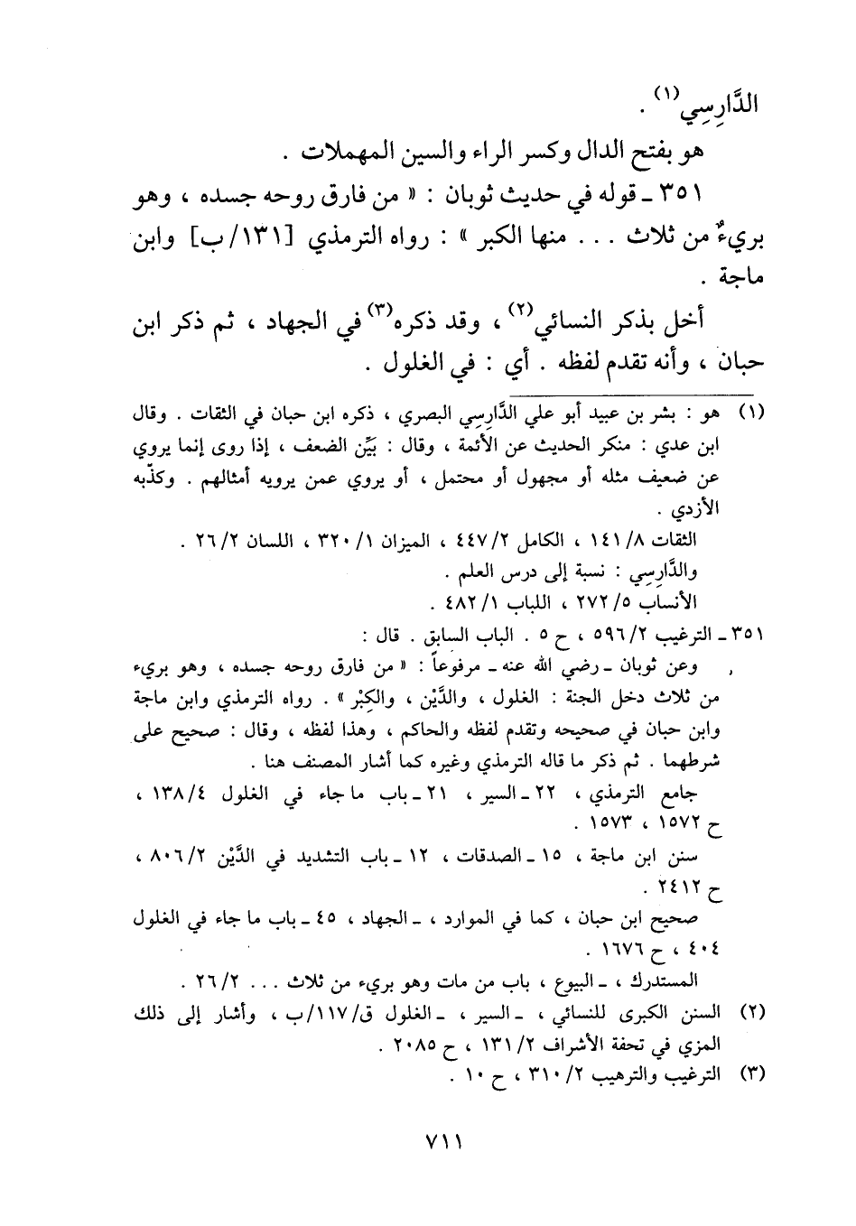 ٣٥١ - قوله في حديث ثوبان: "من فارق روحه جسده، وهو بريءٌ من ثلاث ... منها الكبر": رواه الترمذي وابن ماجة.